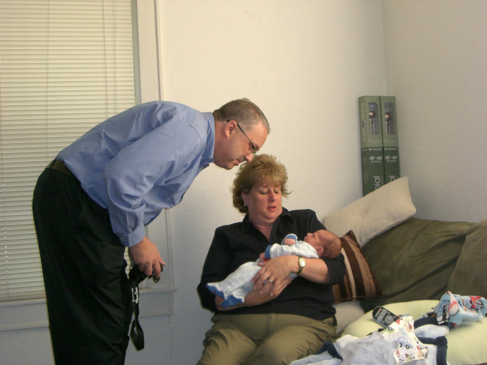 Aidan update: When he was about two and a half weeks old he started getting cranky around 7-11 at night. We just thought that this would be his cranky time and we did everything we could to console him. Last wednesday he was like this ALL day long and ALL night long, so we knew something was up. We had our suspicions that he was acting hungry even though he was eating all the time. We took him to the pediatrician on Friday and had him weighed. Our suspicions we confirmed that he was not getting enough milk from me and has not gained a good amount of weight. The pediatrician was soooo nice and sooo awesome. She told me that this happens to women all the time (including herself) and that even though we would have to supplement with formula I would still get to nurse and he will still be a normal kid. So, he gets to nurse and then afterwards he gets a two ounce bottle at every feeding and he is like a DIFFERENT baby. He is happy all the time and he is growing right before our eyes. It's crazy.